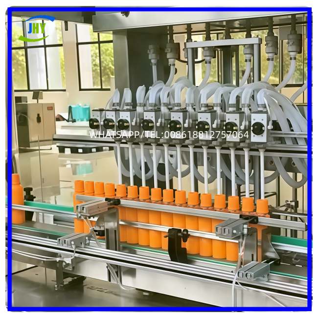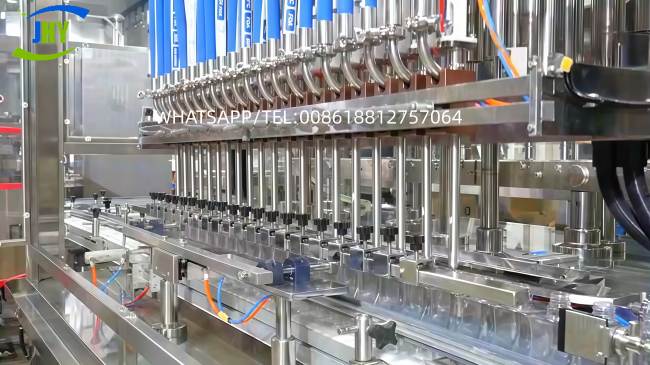 It can be configured with anywhere from 4 to 12 filling nozzles. Initially, when production volumes are low, we'll start with 4 nozzles, then increase to 8 or 12 as orders increase, without having to replace the entire machine. In terms of speed, it can theoretically fill up to 6,000 100ml bottles per hour, and 2,500 1000ml bottles per hour—a very respectable output for a dish wash liquid production line.