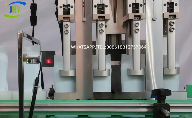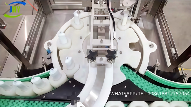 The filling valve of this machine features a backflow function, which instantly collects liquid after filling to prevent dripping and keeps the bottle threads dry, making it easy to screw on the cap immediately afterwards without making the bottle sticky. This solves the problem of slippery hand sanitizer contaminating the production line or the bottle during filling.
